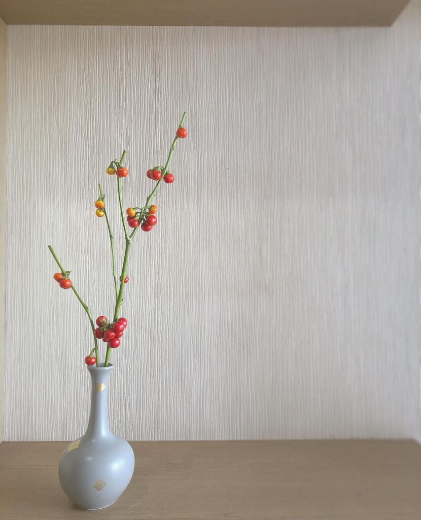 九谷焼の一輪挿しを使って飾る実もの・秋を感じるプチトマトのような〜ハナナス〜