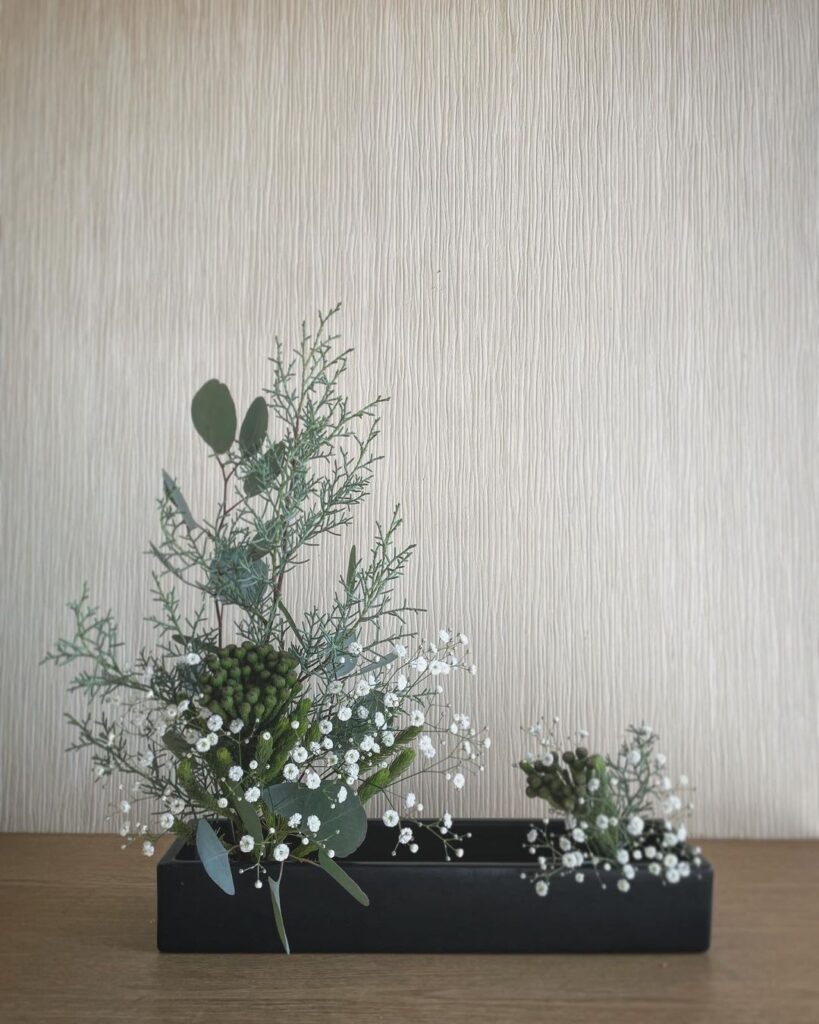 くすみカラーで洋風のクリスマス風いけばなも楽しんでみてください。