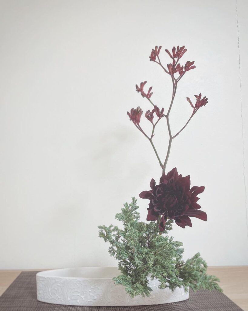 大人なクリスマスに飾りたい『赤い花材』|シックな色合いのダリアとカンガルーポー