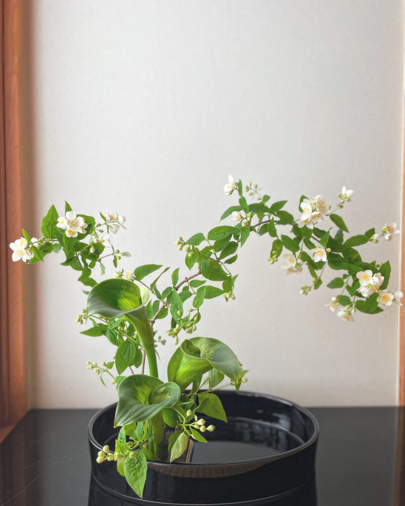 バイカウツギとカラーの組み合わせを生ける時のポイント