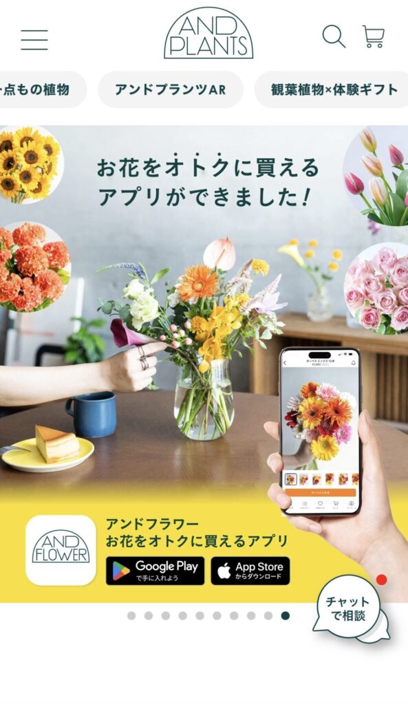 先日、観葉植物でおなじみの AND PLANTS(アンドプランツ) から、アプリを使ってお花の注文ができるようになったと聞いて、さっそく試してみました。
