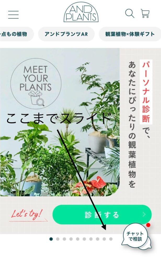 『AND PLANTS』公式サイトに入るとトップがこんな感じの画面です。
