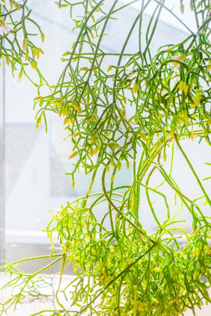 小さな白い花が咲きます。他のリプサリスの種類には、黄色やピンクの小花を咲かせるものもあります。