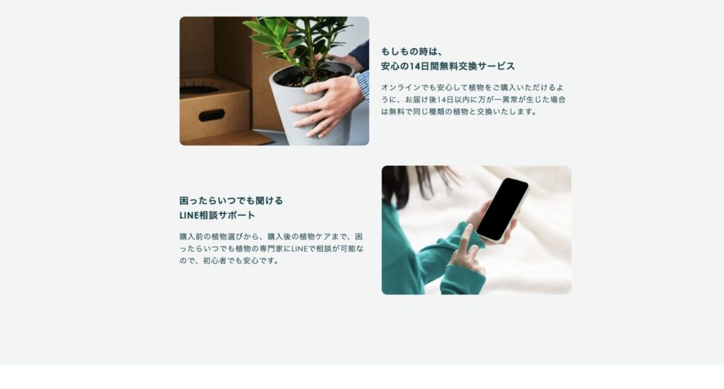 届いてから14日以内に異常があった場合は同じ種類の植物と無料で交換してこれるので安心です。