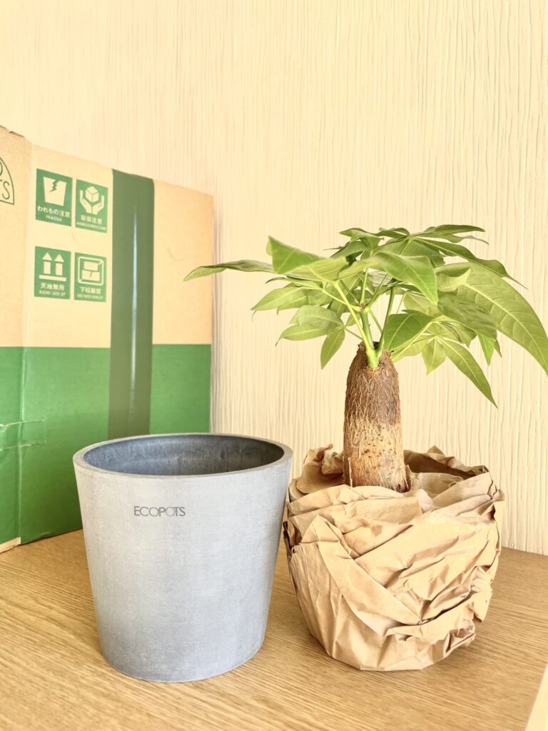 葉の色も良くや艶もあって元気なパキラが届きました。