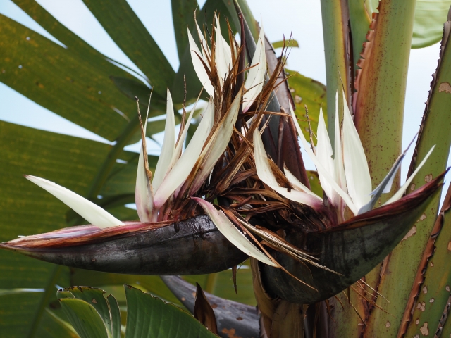 艶のある大きな葉が特徴の『オーガスタ』は、オレンジの花を咲かせる『極楽鳥花』と言われる『ストレリチア・レギネ』とは違う特徴を持っていました。