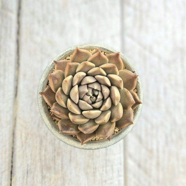バラの花のようなロゼット状の姿をしています。その美しい姿で多肉植物の中でも人気です。
